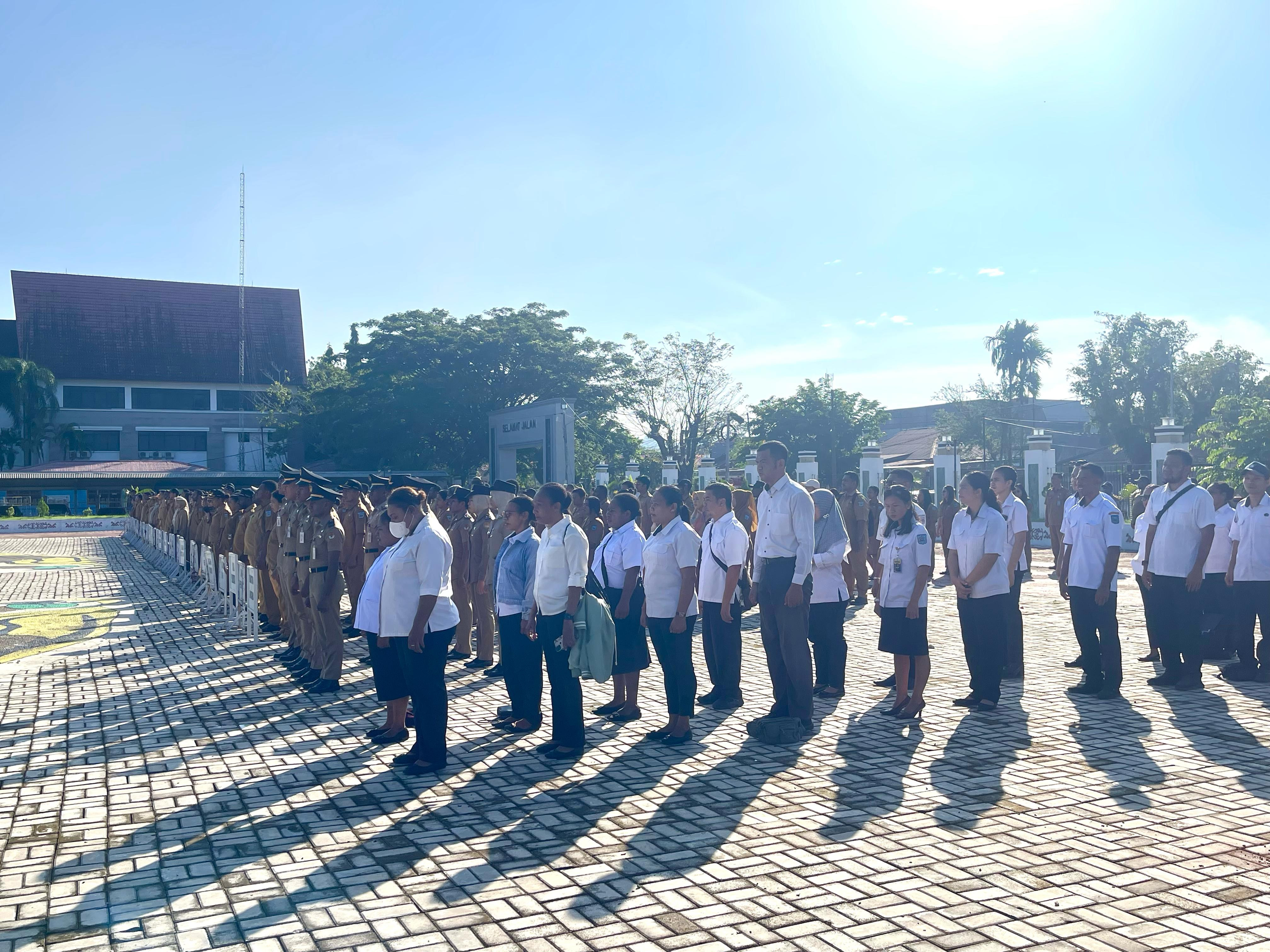 Kota Sorong - Apel pagi rutin yang di Pimpin oleh Wali Kota Kota Sorong, Septinus Lobat, S.H., MPA., di dampingi...
