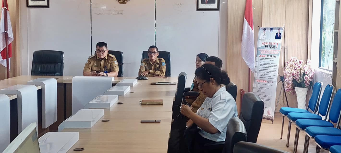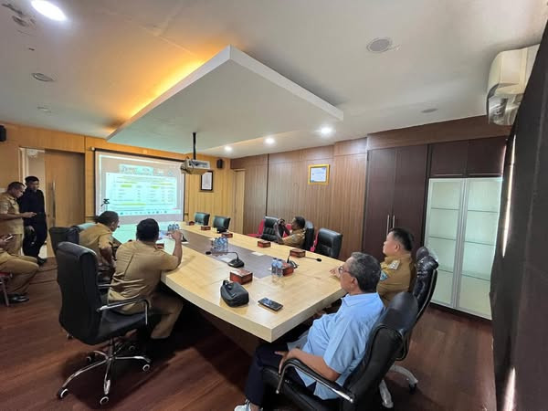 Penjabat Wali kota De. Bernhard E. Rondonuwu, S.Sos., M.Si, mengikuti Zoom Meeting Koordinasi Pengendalian Inflasi Daerah. Ruang Anggrek, Lt.II, Kantor Wali...