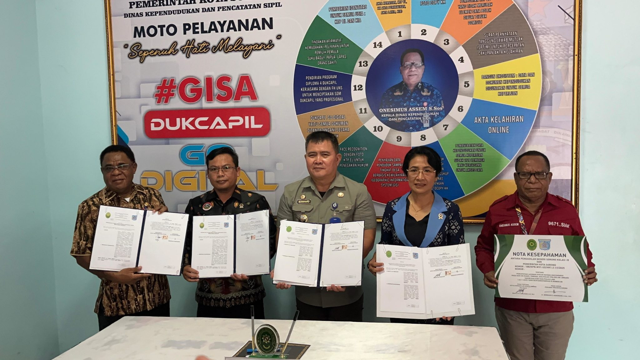 Penjabat Wali Kota Sorong, Dr. Bernhard E. Rondonuwu, S.Sos., M.Si., didampingi Sekretaris Daerah Kota Sorong bersama Kepala Dinas Dukcapil Kota...