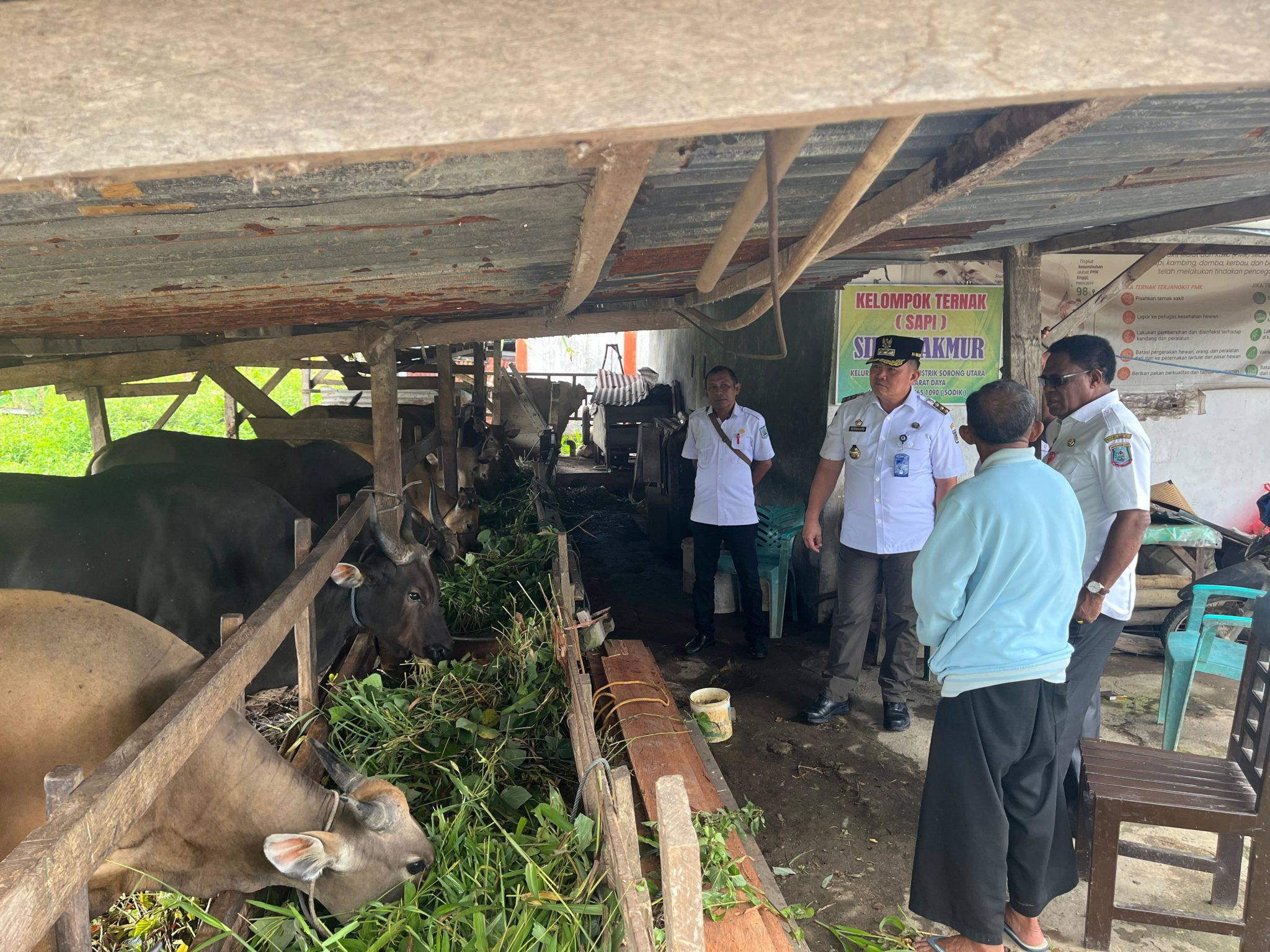 Penjabat Wali Kota Sorong, Dr. Bernhard Eduard Rondonuwu, S.Sos., M.Si., bersama Sekretaris Daerah dan Dinas Pertanian meninjau proses peternakan sapi...