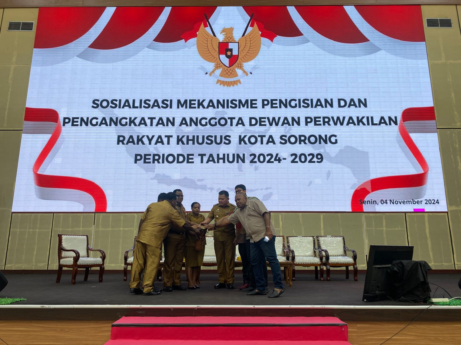 Badan Kesatuan Bangsa dan Politik Kota Sorong melaksanakan kegiatan Sosialisasi Mekanisme Pengisian Dan PenganGkatan Anggota Dewan Perwakilan Khsusus Kota Sorong...
