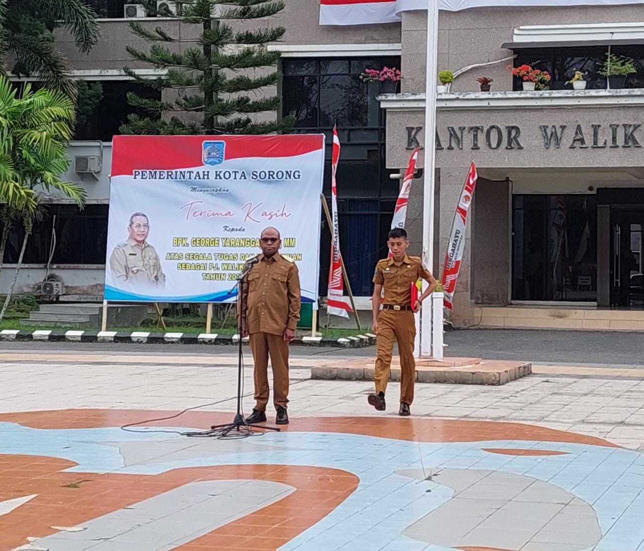 Penjabat Wali Kota Sorong George Yarangga, A.PI. MM, memimpin Apel Pagi yang diikuti oleh Plt. Sekretaris Daerah Kota Sorong, para...